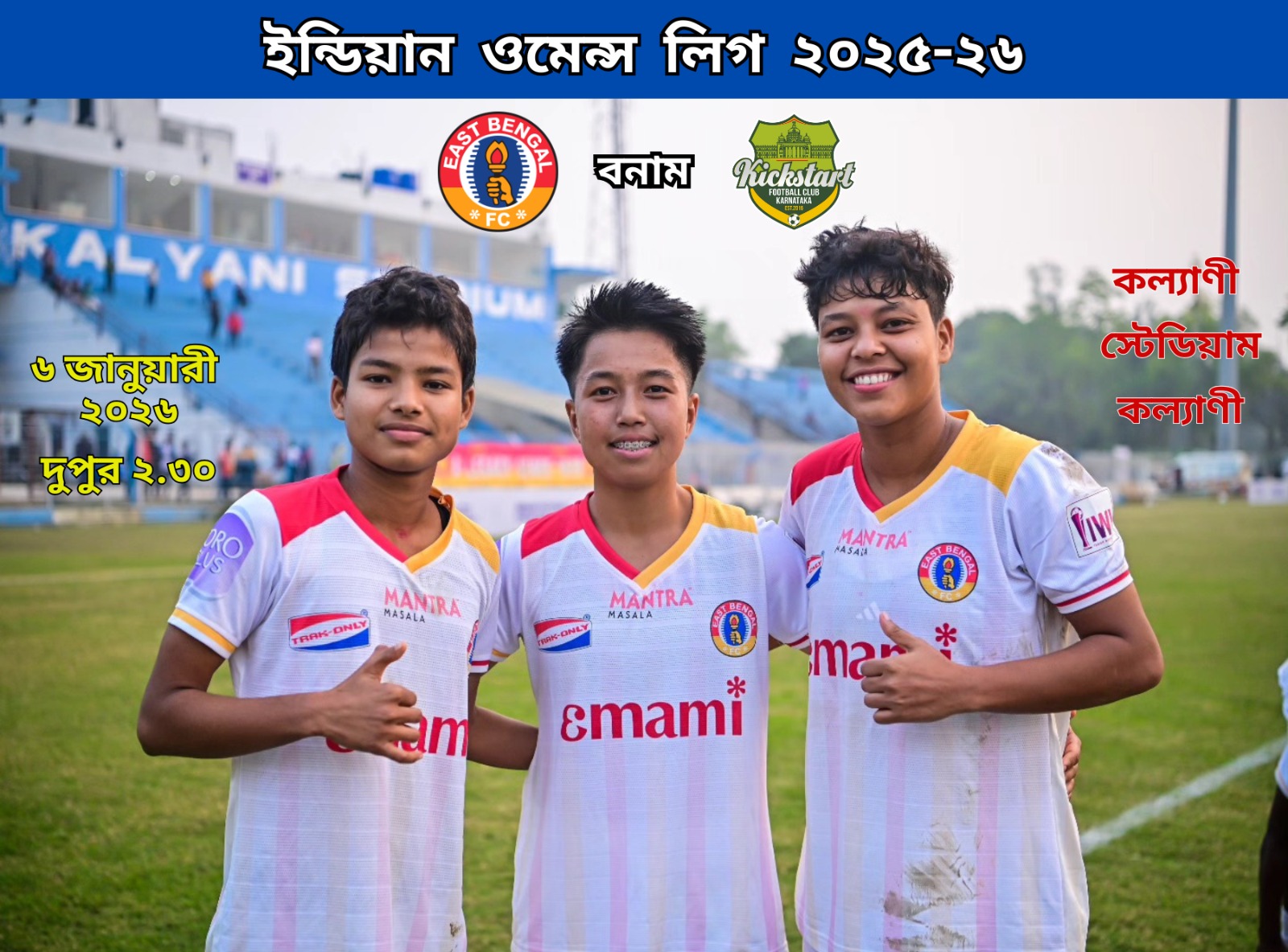 ইন্ডিয়ান ওমেন্স লিগ ২০২৫-২৬ : ইস্টবেঙ্গল ৫ গোলে বিজয়ী হয়েছে