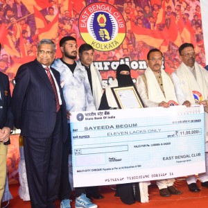 In keeping with its long-standing tradition of standing by its own, East Bengal Club and its former players fulfilled their commitment to Pasha’s family by collectively handing over ₹11 lakh as financial assistance. Mrs. Saeeda Begum, wife of the late Ilyas Pasha, received the support in the presence of their daughter Faria Arzuma Khansa and son Zabiullah Mohammed, a moment that deeply moved everyone present.