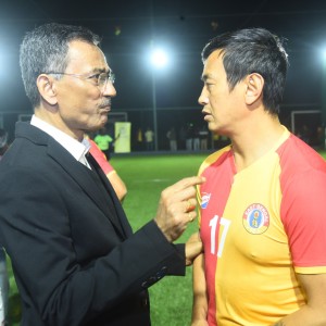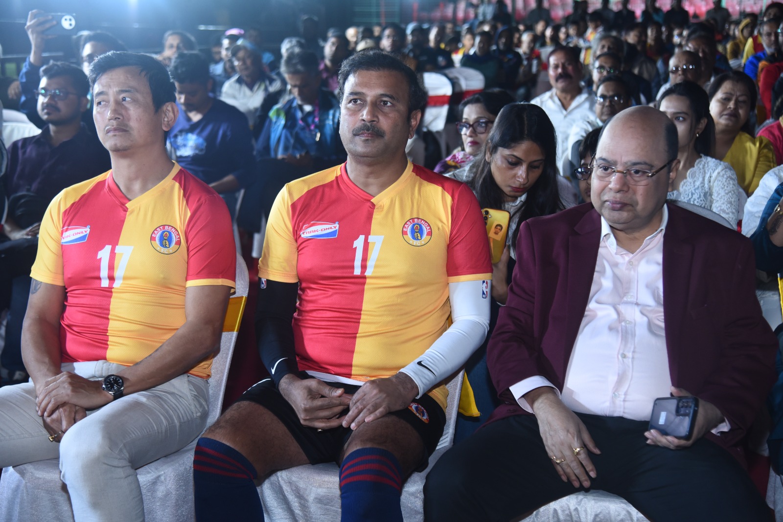 Despite physical limitations, revered figures such as Bhaskar Ganguly, Manoranjan Bhattacharya, and Prashanta Banerjee were present, while legends including Bhaichung Bhutia, Alvito D’Cunha, Rahim Nabi, Soumik Dey, Dulal Biswas, Mehtab Hossain, Arnab Mondal, Sandeep Nandi, Dipankar Roy, Sasthi Duley, Dipak Mondal, Barreto, Asim Biswas, Sule Musa, Chandan Das, Falguni Dutta, and Suryashekhar relived moments of Red & Gold glory under the night lights.