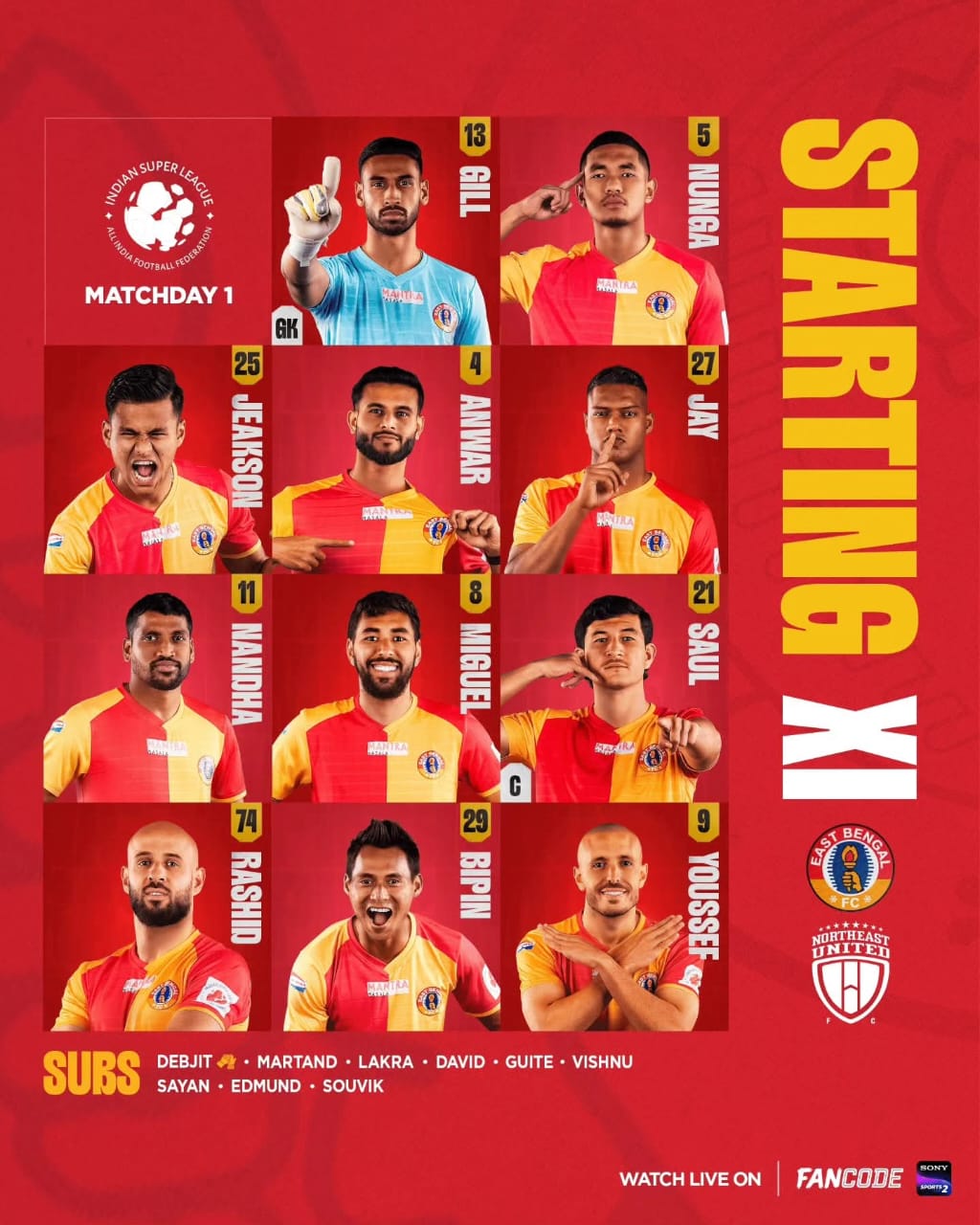 The opening 45 minutes saw both sides testing each other cautiously. East Bengal enjoyed greater possession and looked comfortable building from the back, but NorthEast United remained compact defensively and disciplined in midfield.